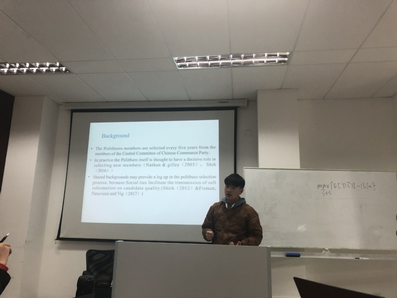 王亮介绍的文章为Fisman, Shi & Wang所著的"Social Ties and the Selection of China's Political Elite". 发表在American Economic Review。