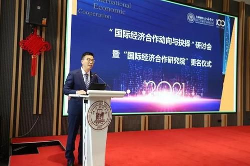 4月17日,上海财经大学主办,商学院和上海市世界经济学会承办的“国际经济合作动向与抉择”研讨会暨“国际经济合作研究院”更名仪式在学校科技园举行。上海财经大学党委常委、副校长陈信元出席并致开幕辞。本次会议共分为更名仪式和高端学者论坛两个单元,更名仪式由上海财经大学商学院常务副院长魏航主持。