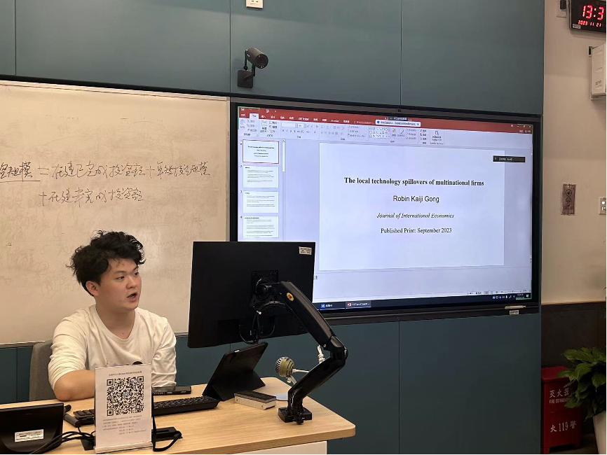 2021级世界经济专业硕博生柳嘉欣报告了Robin Kaiji Gong在2023年6月于Journal of International Economics 上发表的文章“The local technology spillovers of multinational firms”。该文旨在研究美国的跨国公司的创新活动如何影响与其在中国的子公司处于同一个县区的中国企业的生产率。作者通过手动匹配美国跨国公司位于中国的子公司以及与其在中国的子公司处于同一个县区的中国国内企业,并采用基于引用加权的专利库来衡量美国跨国公司的创新质量。文章使用OLS模型和基于美国研发税收抵免政策作为工具变量,实证研究后发现,美国的跨国公司的创新能力的增强会显著提高与其在中国的子公司处于同一个县区的中国国内企业的生产率,表明美国跨国公司在中国的子公司对处于同一个县区的中国国内企业存在技术溢出效应。