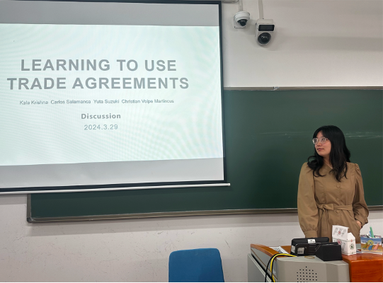 2022级世界经济专业博士生张泰豪报告了Kala Krishn,Carlos Salamanca,Yuta Suzuki,和Christian Volpe Martincus的一篇工作论文“Learning To Use Trade Agreements”。该文以南美洲阿根廷,秘鲁和哥伦比亚的自贸协定发展深度和贸易交易数据为研究基础,运用模型推导的实证研究方法,探讨企业通过学习效应克服原产地规则所致的额外固定成本,进而提高企业利用优惠关税的可能性。换而言之,探究企业在过去的优惠关税使用经历是否会促进当下企业对FTA优惠关税的使用。