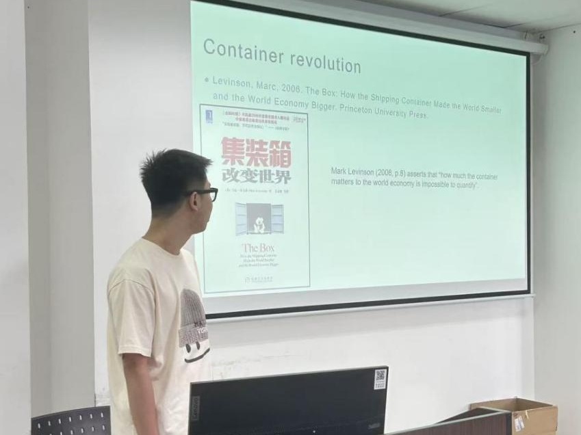 2024级工商管理学硕士研究生孙义鹏报告了港口发展与区域经济发展的文献综述,并介绍了Copericus Data数据库。文献综述的方面,从港口集装箱改革、技术升级、自然灾害影响、基础建设投资与港口效率提升这些方面介绍了港口发展对区域经济发展的影响。在数据库介绍方面,介绍了Copericus Marine Environment Monitoring Servicede中海洋物理数据,海洋生物数据以及海冰数据三个方面,并指出了现有的一些应用。